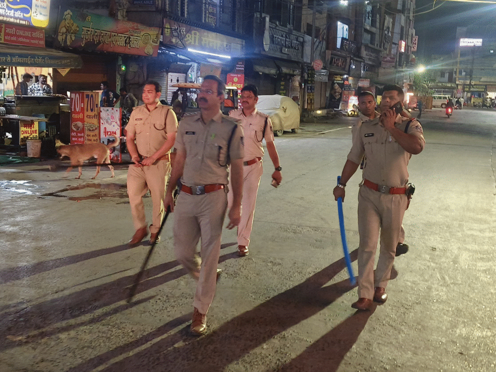 रात करीब 11 बजे से लेकर देर रात तक सीएसपी सत्येंद्र घनघोरिया और शहर के विभिन्न थाना प्रभारियों ने पुलिस बल के साथ मिलकर शहरभर में निगरानी की। स्टेशन रोड, डीडी नगर, माणक चौक और शहर सराय जैसे संवेदनशील इलाकों में चेकिंग की गई।